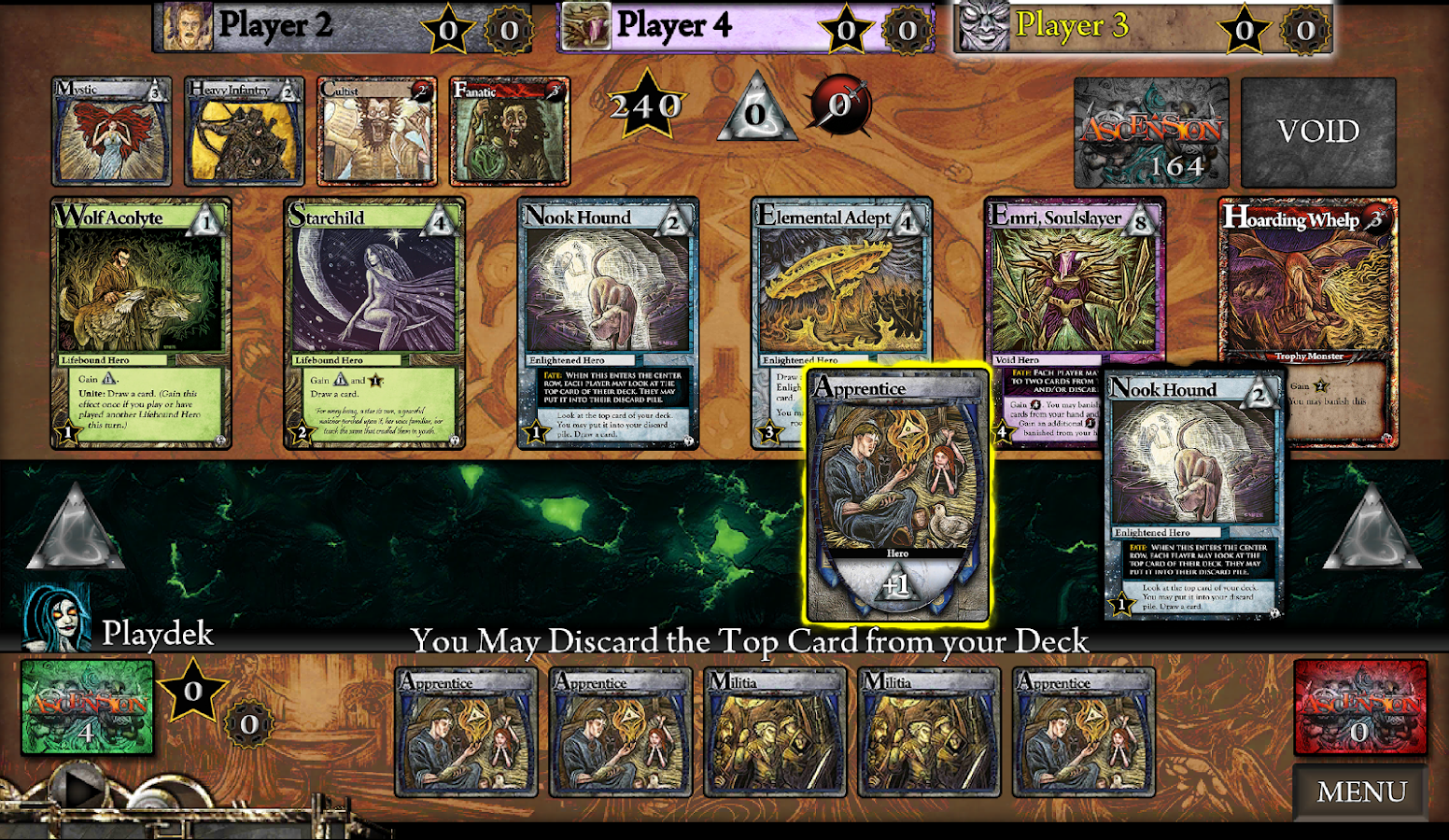 Ascensión: Crónica del exterminador de dioses, fue el primer juego de cartas con licencia oficial de cubierta edificio para iOS, y ahora está disponible para los dispositivos Android! Juega solo o con amigos a la batalla contra el Caído por el honor y la victoria. Concebido y diseñado por tres Magic: The Gathering campeones del torneo, Ascensión proporcionará horas de juego atractivo y estratégico para los entusiastas y los jugadores experimentados.
